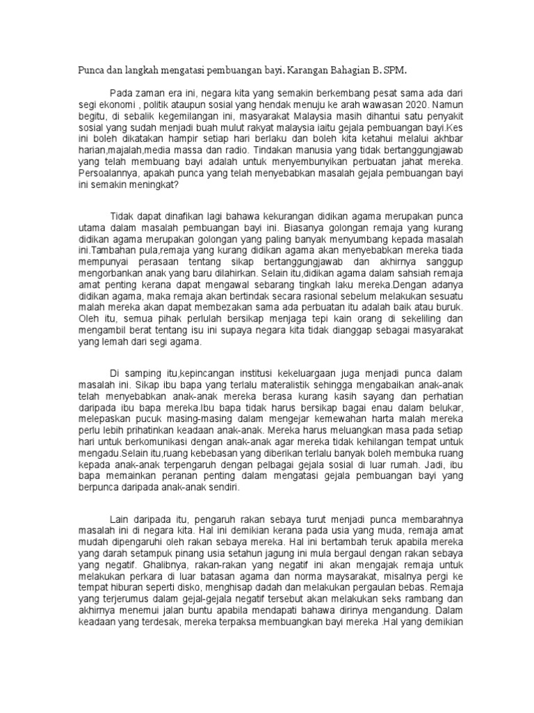 Contoh Karangan Kes Pembuangan Bayi Stpm 1 Pdf